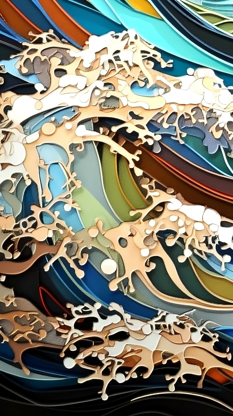 Cette peinture numérique capture l’essence de la culture japonaise à travers une scène pittoresque d’une mer déchainée. Les vagues détaillées créent un cadre paisible et harmonieux, tandis que les nuances de rose et de pourpre dans le ciel ajoutent une touche de couleur vive et dynamique. La calligraphie japonaise dans le coin supérieur droit ajoute une touche d’authenticité à l’ensemble, renforçant l’impression d’un moment figé dans le temps. Cette peinture numérique est une ode à la beauté de la nature et à la simplicité de la vie, inspirée par la culture japonaise.